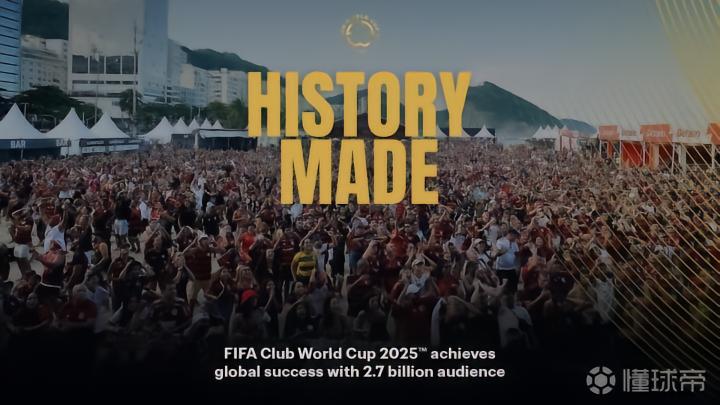 FIFA官方消息,2025年世俱杯全球观众达到27亿。