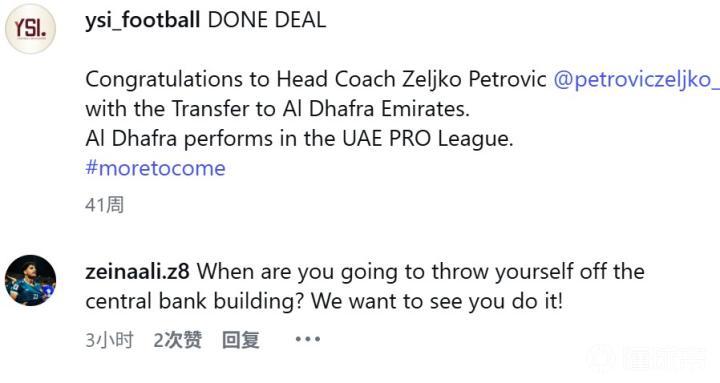 也有不少好事的伊拉克球迷前去彼得罗维奇的个人社媒账号留言,对他进行了调侃,还有部分球迷利用AI制作了他“跳下”大楼的图片。