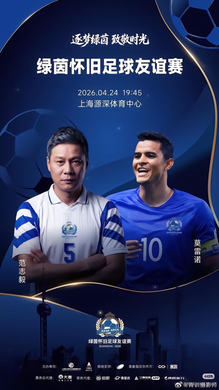 北京时间4月9日,绿茵怀旧足球友谊赛官宣,莫雷诺、范志毅将出席,票价150元起。
