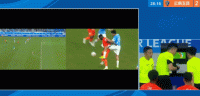 第6分钟,姜至鹏倒在禁区内,主裁判未予判罚