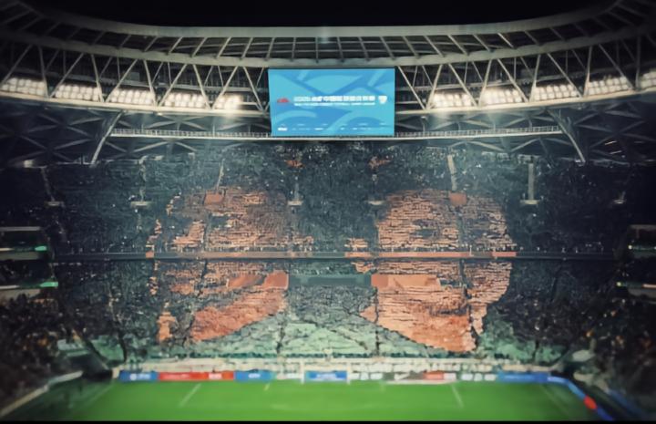 北京时间4月12日,北京国安坐镇主场对阵本轮的中超对手成都蓉城。在比赛开始前,工体现场展示张玉宁、法比奥巨型TIFO。