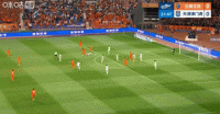 第35分钟,黄紫昌左路传中,杨帆漏顶,奥斯卡准备不足头球顶偏