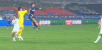 第19分钟,汪士钦从身后拉倒贝维斯,得到一张黄牌