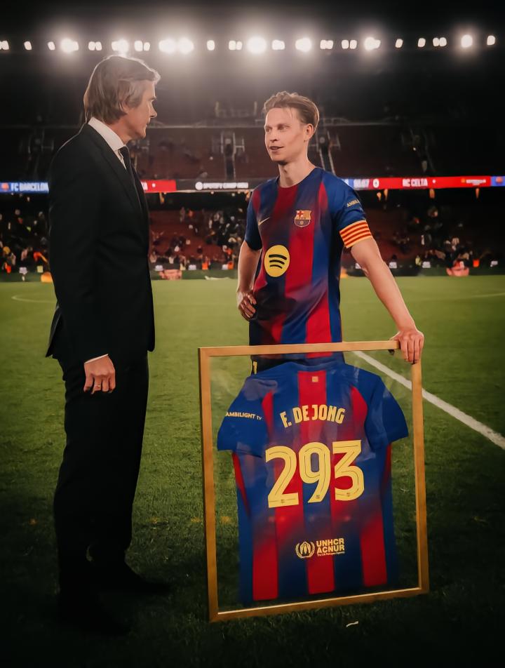 在与塞尔塔的西甲第33轮比赛中,弗朗基-德容替补登场,以293场超越科库,成为巴萨队史出场次数最多的荷兰球员,今日,弗朗基-德容更新社交媒体发表感言。