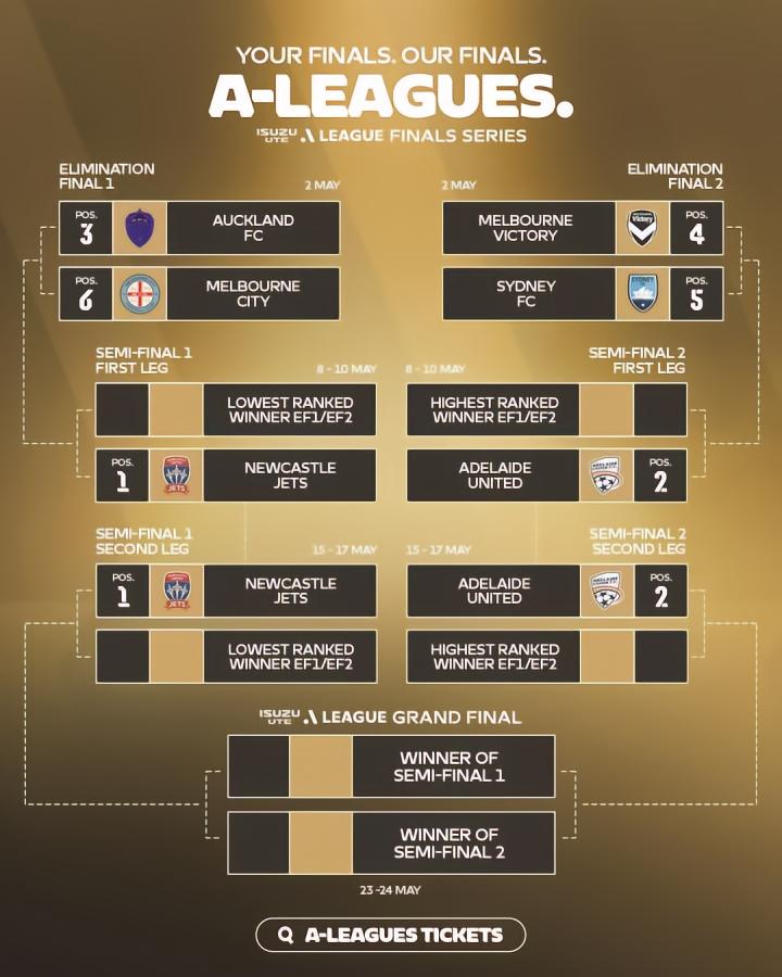 5月2日 墨尔本胜利 vs 悉尼FC(胜者将在半决赛对阵纽卡斯尔喷气机)