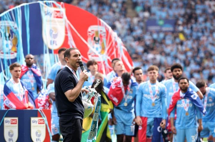 47岁的兰帕德执教生涯几经起伏,如今在考文垂再度证明自身能力。周日下午,他尽情享受夺冠欢庆时刻。妻子克里斯汀、四名子女中的两名孩子一同登上球场参与庆祝,随后他向欢呼的全场球迷发表致辞。